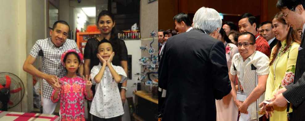 ベトナム戦争でアメリカ軍が大量に散布した枯葉剤の影響と言われています。平和大使そしてホーチミン市人民委員会の日越友好協会委員をしています。