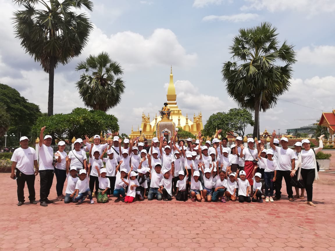 日本では子供のころに修学旅行や遠足に行きますが、ラオスではあまり見かけません。 そこで、私達はナムアン村の子供たち、父兄、先生を日帰りのビエンチャン遠足に招待しました。