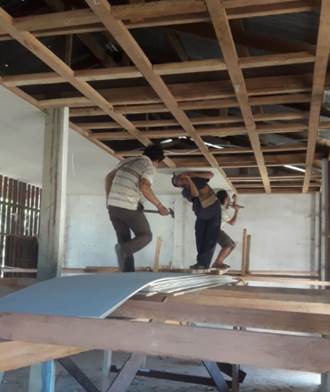 次は天井を作るための木を数えて、その後、建材の店へ・・・