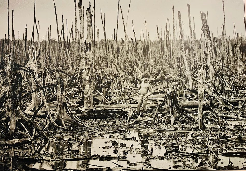 2020年にベトナム戦争終戦45周年を迎えた現在、約400万人のベトナム人が枯葉剤に曝露したとの調査報告があります。 枯葉剤の散布が強化された1966年以降、出産異常の報告が急増し、現在では、先天性障害を抱える子供15万人を含む100万人が報告されているが、全土で累計約800万人の人が被害に苦しんでいます。 直接浴びた人だけでなく、汚染されたことを知らずにその土地の魚や穀物を食べた人、生活を続けた人にまで影響が出続けて、 世代をまたいで奇形の子供が誕生する例があり、その時初めて自分が枯葉剤の影響を受けていたことを知る人もいる。 アメリカ人帰還兵の子供、孫、第4世代にも被害に苦しむ人もおり、ベトナム人被害者たちは米国に補償を求め訴訟するも、2009年、アメリカ連邦最高裁判所は訴えを却下してしまう。 しかし、外交活発化に伴い、アメリカ合衆国国際開発庁が2012~ 2018年、ダナン国際空港にてダイオキシンの浄化作業を開始。 2019年からは、ビエンホア空軍基地跡の浄化作業にも着手。 さらにベトナム人障害者の支援を行う趣意書を提出している。 上記写真を撮影した中村中村梧郎さんは、写真家として公害問題を中心に取材しており、苦しむ人達の思いを伝えたいと、1970年以降のベトナム戦争の取材を開始しました。数多く撮影した環境被害の写真の中で最も世界に衝撃をあたえたのは“枯れ果てたマングローブの森と1人の少年”の写真です。 この写真は中村さんの著書の中で「死の世界」と呼ばれており、写真が撮られたベトナム最南端の街、「カマオ」は、 ベトナム戦争中、南ベトナム軍の拠点となっており、アメリカ軍は250万リットルの枯葉剤をまきました。 枯葉剤を撒かれたカマオのマングローブの森は合計220万ヘクタールにおよび、これは南ベトナム全域の約1割を占め、 史上最悪の環境破壊といわれております。 ベトナム政府は 終戦後、植林(しょくりん)活動を行いベトナムに豊かな緑が戻ってきましたが、第4世代が生まれてくる、 今でも枯葉剤の被害を受けた子どもたちが生まれ、人々に与えた影響は今なお無くなることはありません。